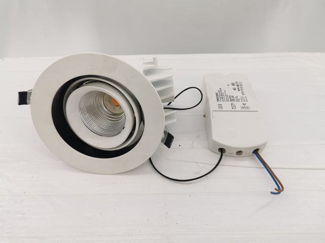 Spot LED encastrable orientable, fourni avec son driver Tridonic d'origine. Matériel testé et déposé soigneusement. Idéal pour l’éclairage de boutiques, bureaux, vitrines ou habitation. Le spot possède une LED type COB pour un éclairage puissant et homogène.