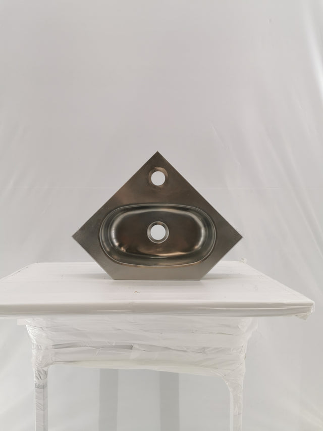 Lave-mains inox mural – Forme triangulaire – Compact et robuste - Très bon état